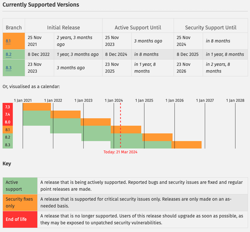 AdocSys is partnering with CloudLinux to provide you Hardened PHP. At the time of writing this article, AdocSys supports PHP 5.6, 7.0, 7.1, 7.2, 7.3, 7.4 and 8.0 on top of the vendor supported 8.1, 8.2 and 8.3. These PHP versions are continuously verified and patched for security issues to keep you and your application code covered while you take the time to review if it adds any value to rewrite your code or move to another solution.